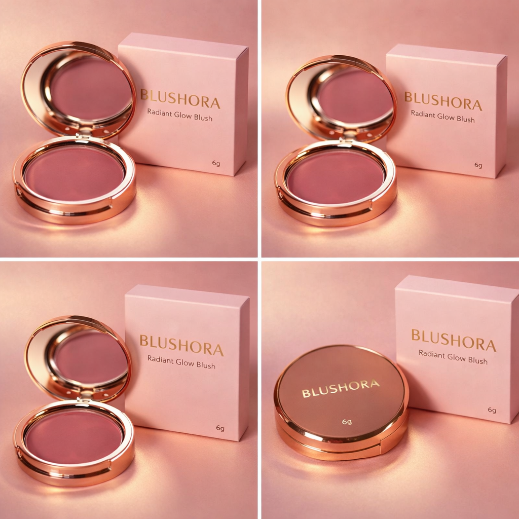 Enhance your natural beauty with Blushora Radiant Glow Blush, a luxurious cheek color designed to give you a fresh, healthy glow all day long. Encased in a sleek rose-gold compact, this blush combines elegance with performance.